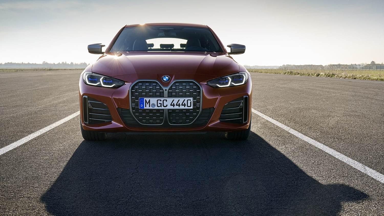 Выразительный дизайн передней части нового BMW 4 серии Gran Coupe характеризуют смелые линии и трехмерные поверхности. Центральным элементом является вертикальная решетка радиатора BMW. Вертикальные воздуховоды в переднем бампере – это не только стильное дизайнерское решение, но и эффективный элемент аэродинамики.